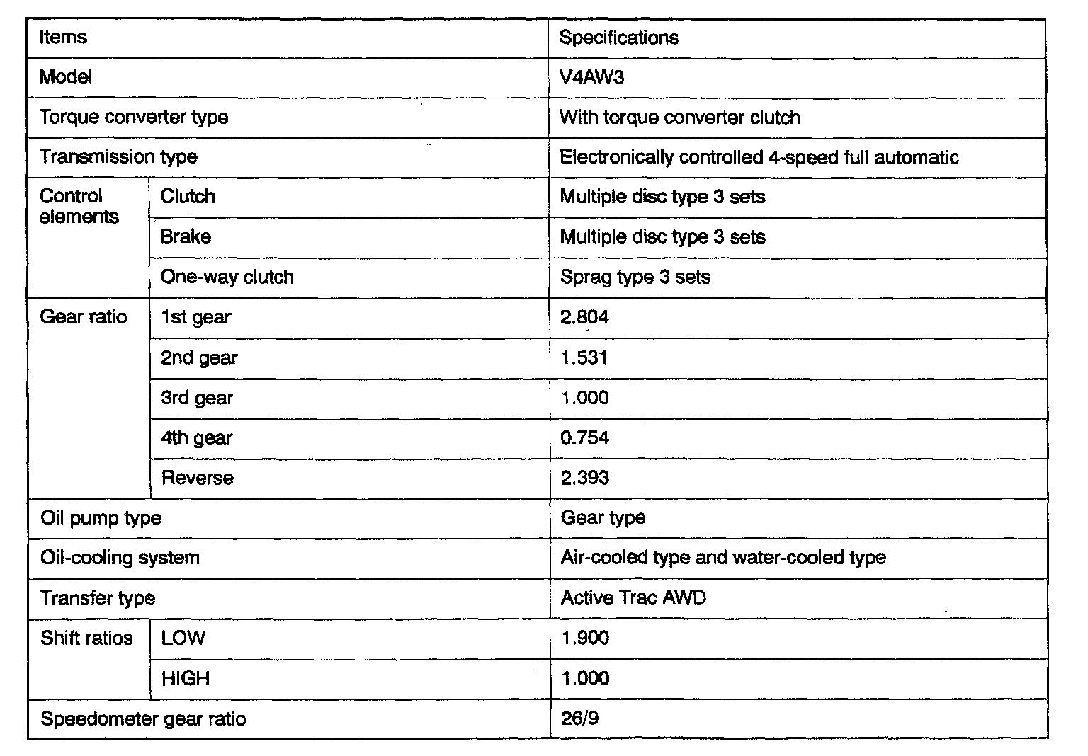 V4AW3 4-spd A/T, Gear Ratios: