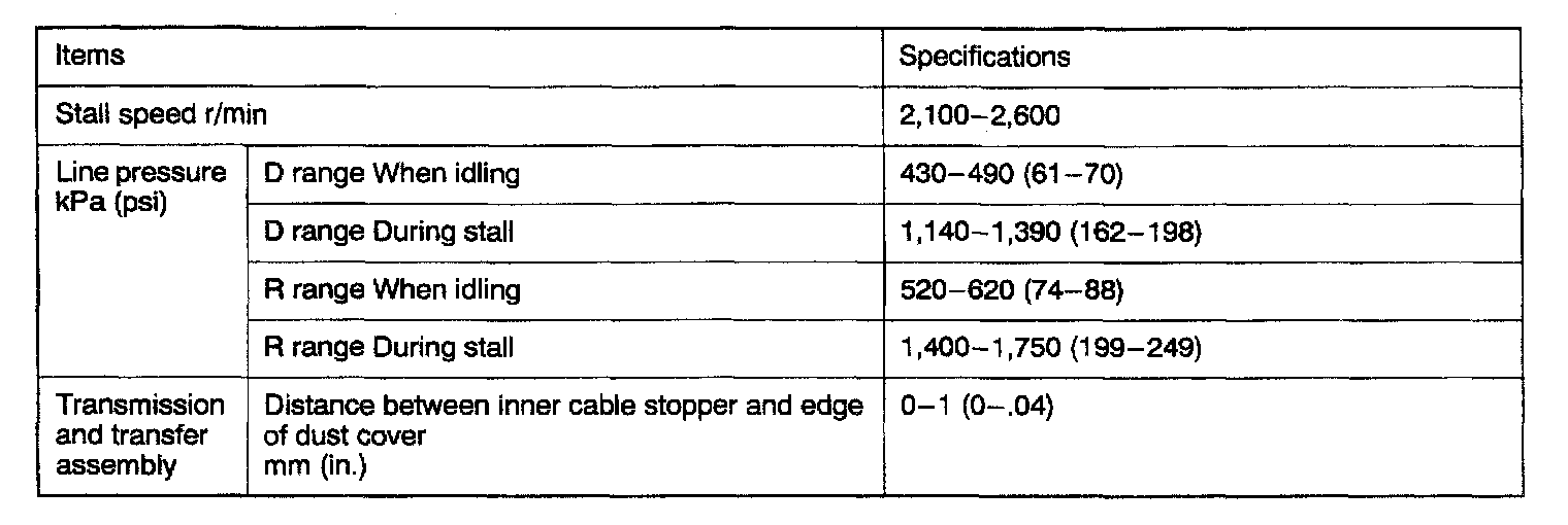 V4AW3 4-spd A/T, Transmission Standard Values & Limits:
