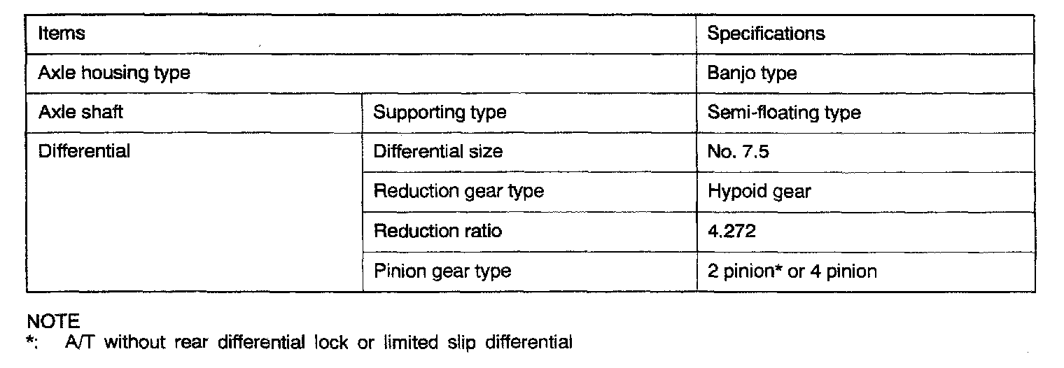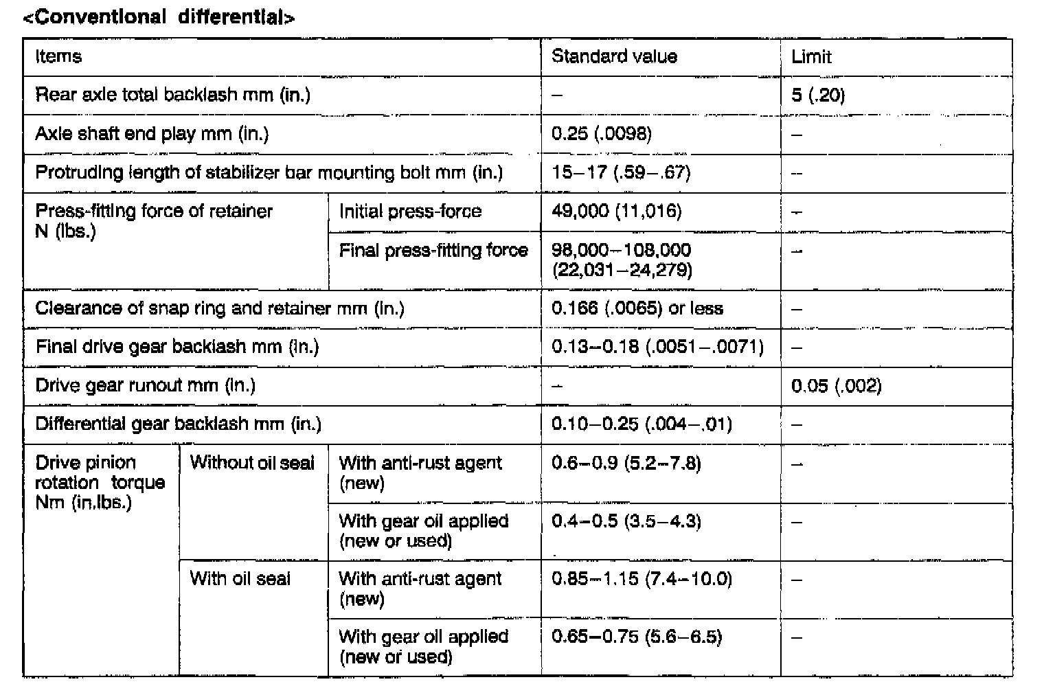 4WD Rear Differential Standard Values & Limits: