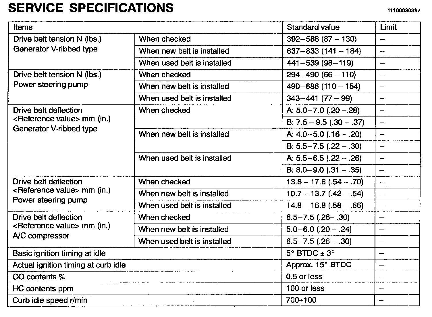 Engine-On Vehicle Service Specifications