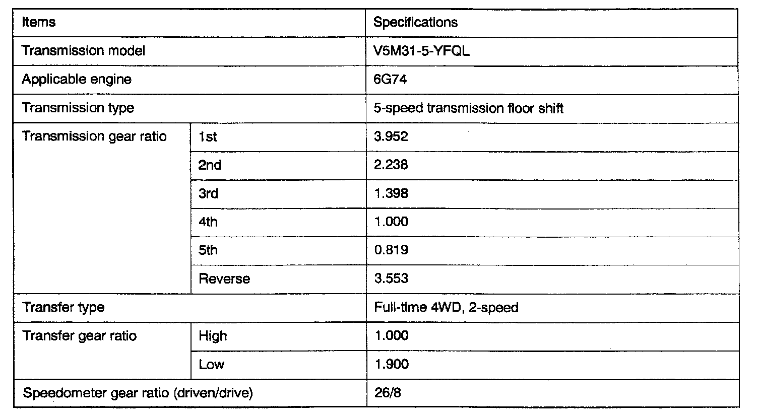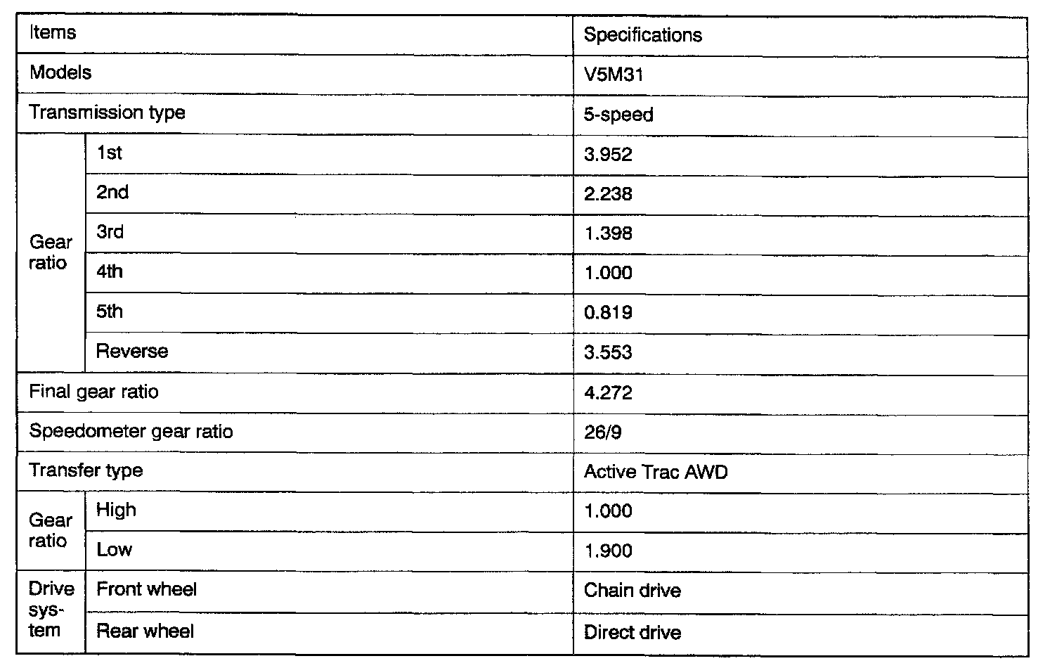 V5M31 5-spd M/T, Gear Ratios: