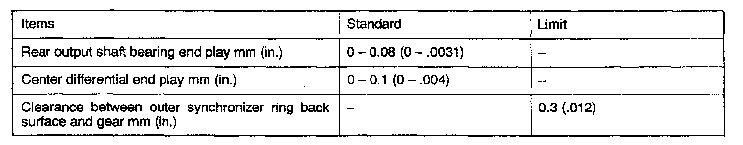 V5M31 5-spd M/T, Synchronizer, Counter Shaft & Differential End Play: