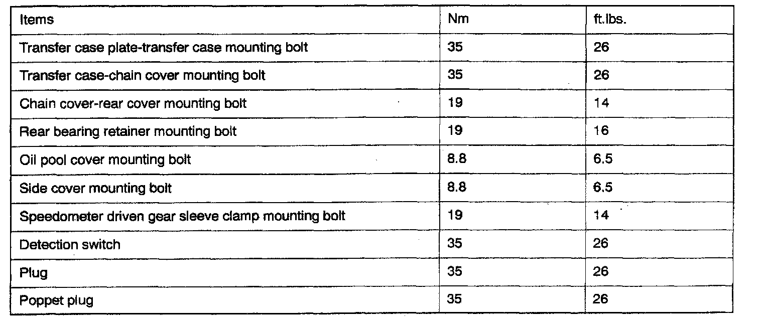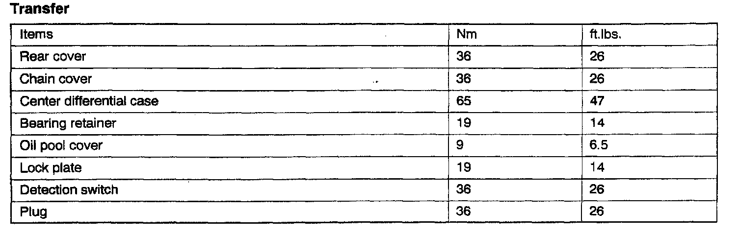 Transfer Case Torque Data