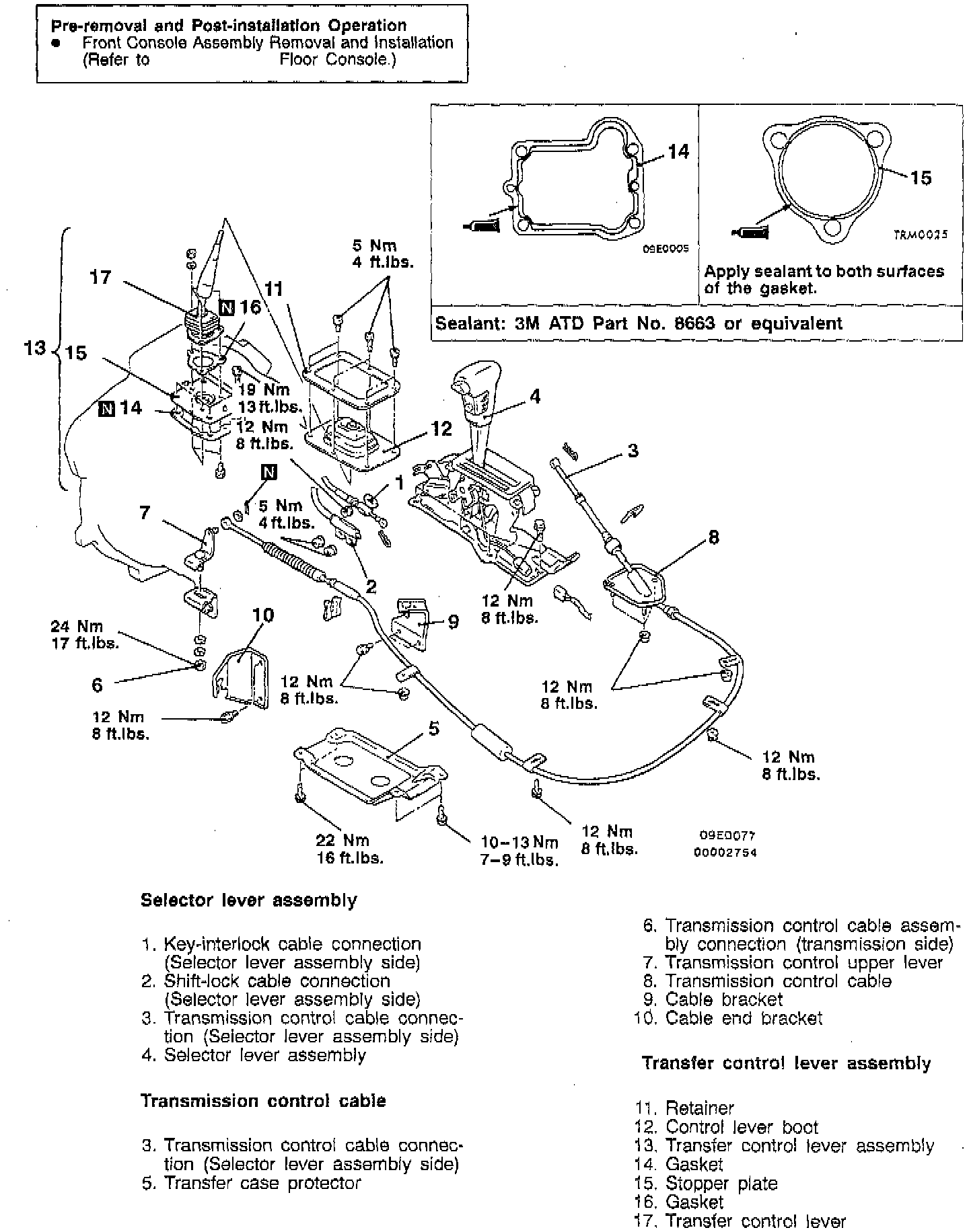 E. Transmission control cable installation (selector lever assembly side). (3)