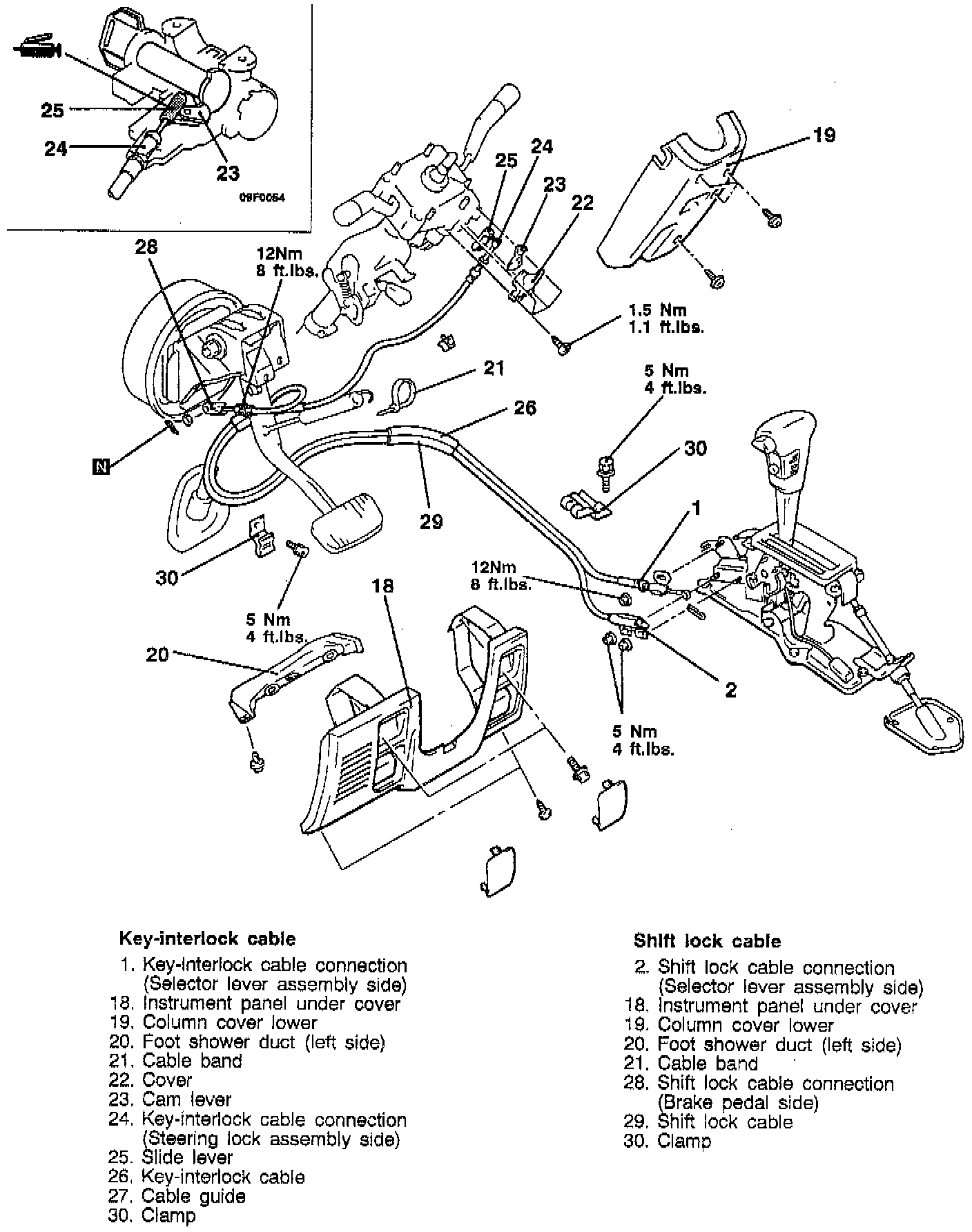 F. Shift lock cable installation (selector lever assembly side). (2)