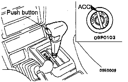 1. Check that the selector lever cannot be moved from the P position to any other position under the following conditions.