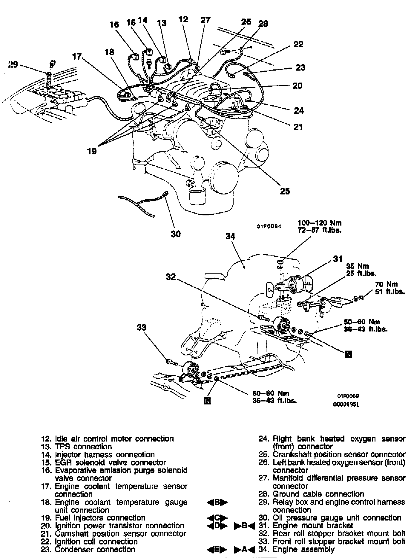When mounting the engine, check to be sure that the cables, hoses, harness connectors. etc. are all in the correct Position.
