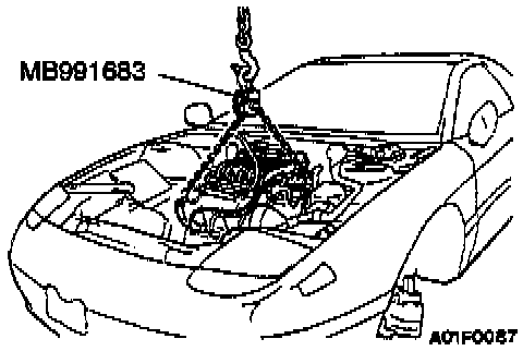 (1) Remove the distributor cap and attach special tool to the engine hooks.