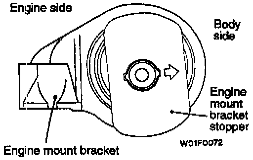 Attach the engine mounting bracket so that the arrow mark on the mounting stopper is in the direction as shown in the illustration.