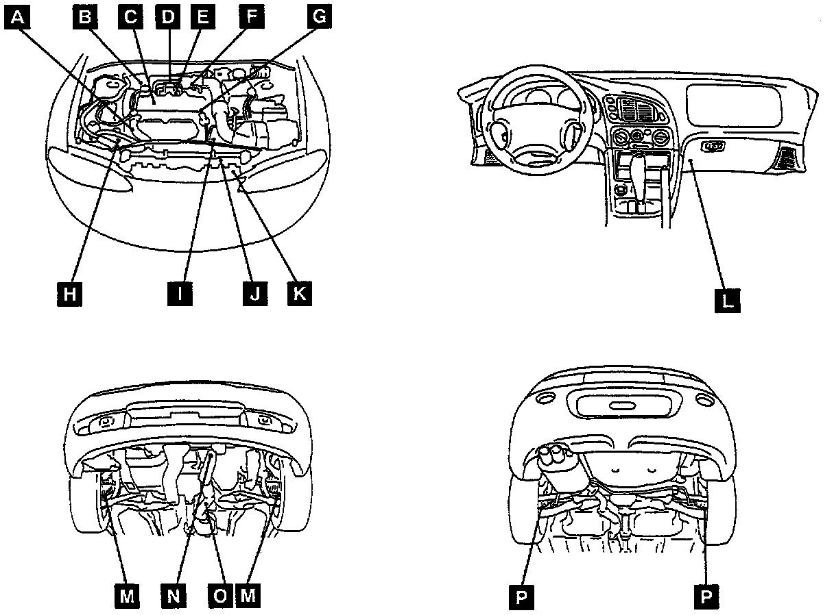 Sensor Locations Views A-J: