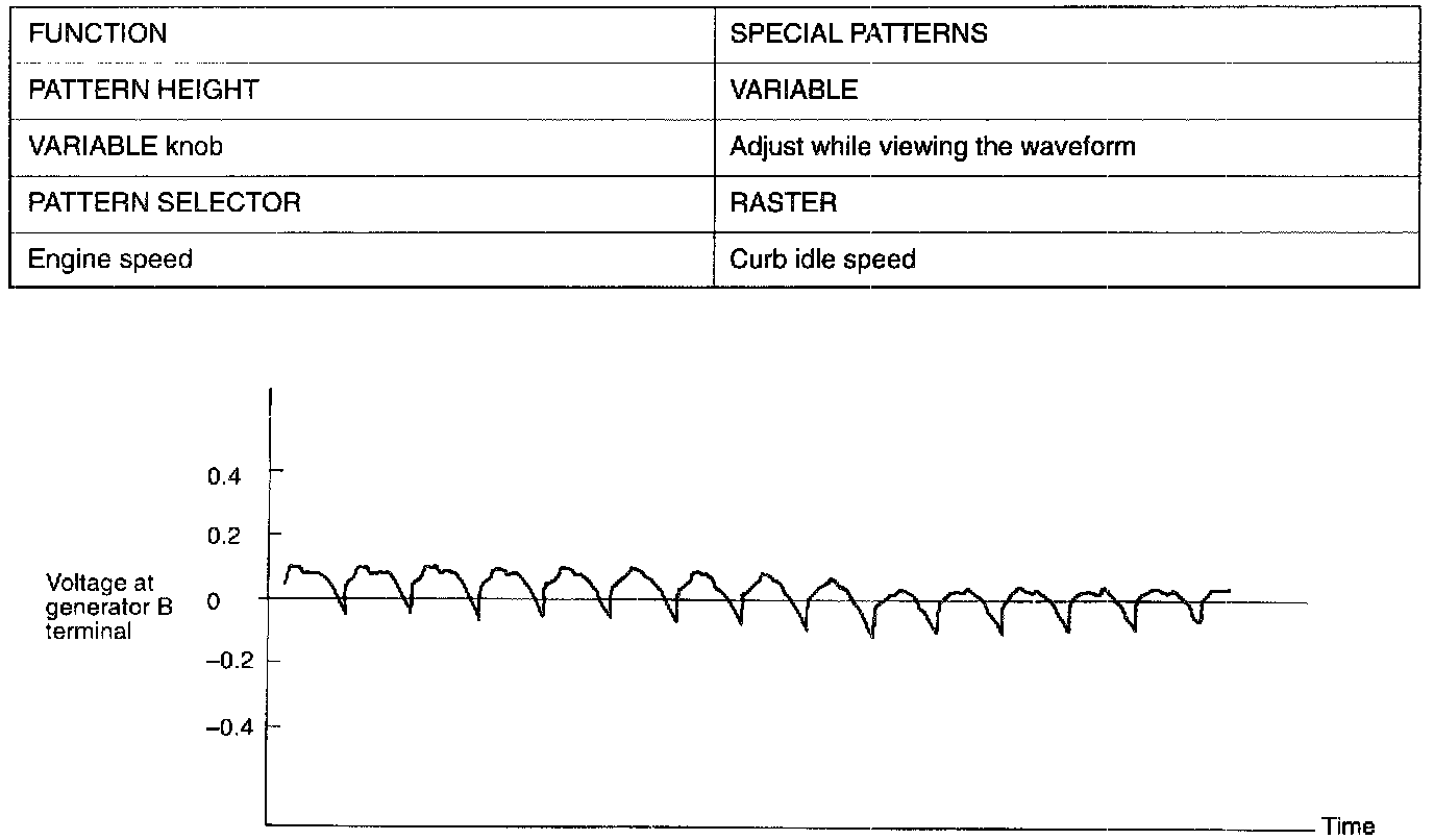 NOTE: The voltage waveform of the generator B terminal can undulate as shown at left. This waveform is produced when the regulator operates according to fluctuations in the generator load (current), and is normal for the generator.