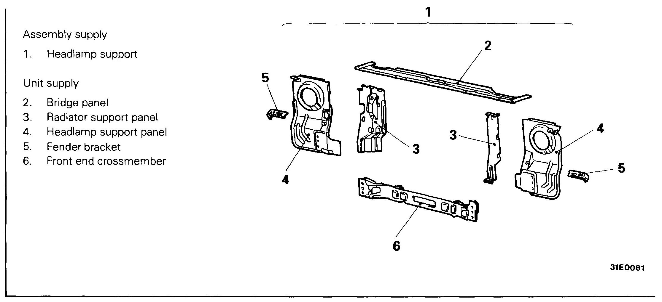 HEADLAMP SUPPORTParts for the headlamp support are available as an assembly, and the parts are also available separately for convenient use in parts replacement.