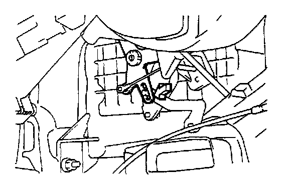 2. With the air selection damper lever pressed inward in the direction indicated by the arrow, connect the inner cable of the mode selection control wire to the end of the mode selection lever, and then use a clip to secure the outer cable.