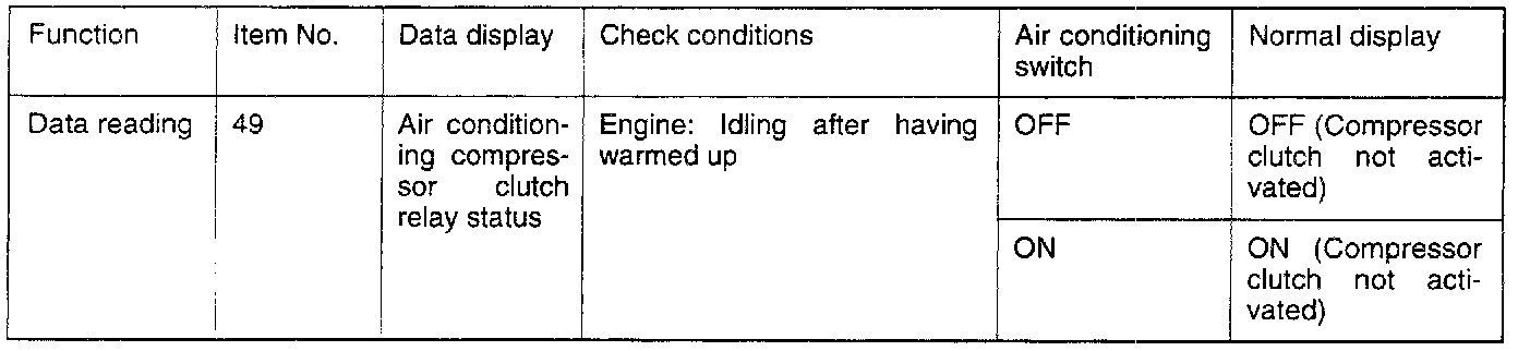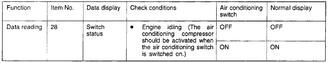 TROUBLESHOOTING HINTS:If the air conditioning compressor's magnetic clutch is not activated when the air conditioning switch is switched on during idling, the cause is probably a malfunction of the air conditioning control system.
