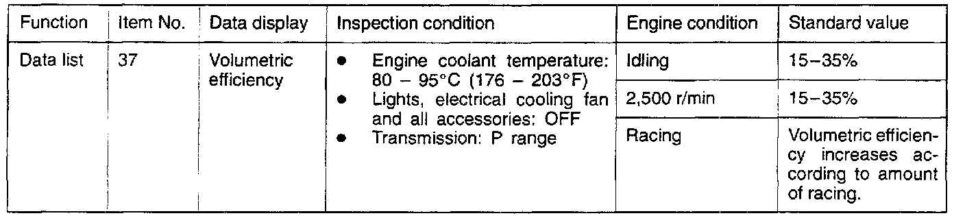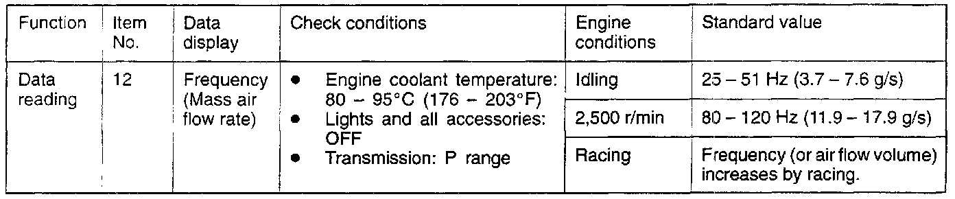 If idling is possible even though the volume air flow sensor output frequency is outside the standard value, the cause is usually a malfunction other than of the volume air flow sensor.