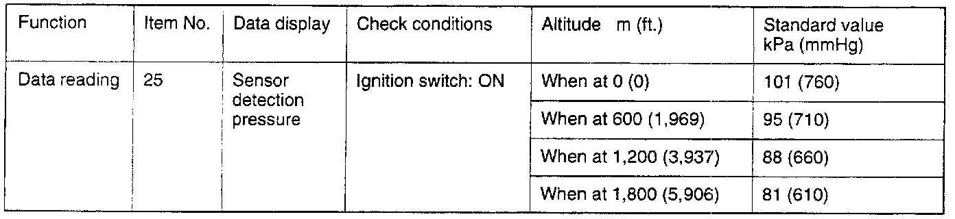 If, during high-speed driving, there is a noticeable sharp drop of the displayed pressure of the barometric-pressure sensor, check for clogging of the air cleaner.