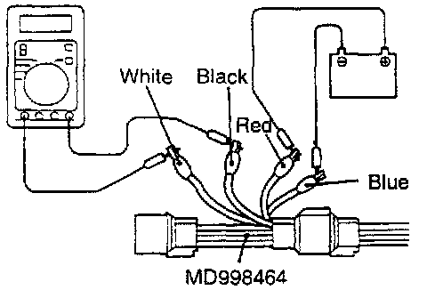 (6) Connect a digital voltmeter to terminal (2) (black clip of the special tool) and terminal (4) (white clip).