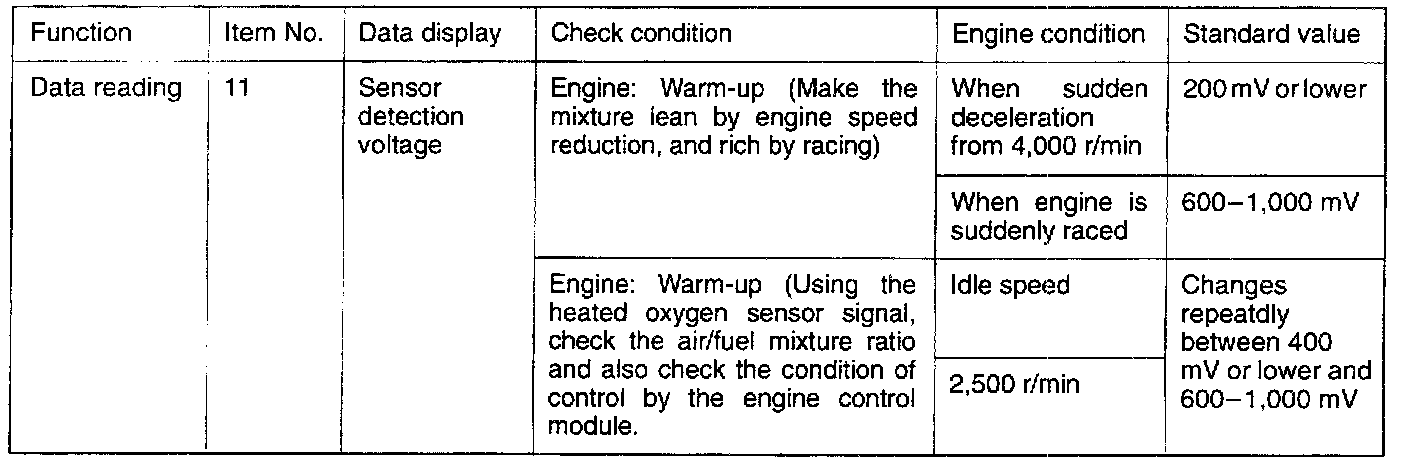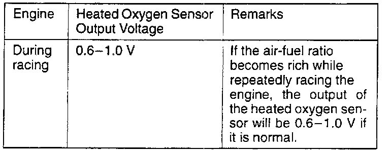 If the heated oxygen sensor output voltage is outside the standard value even though the results of the checking of the heated oxygen sensor are normal, the cause is probably a malfunction of a component related to mixture control.