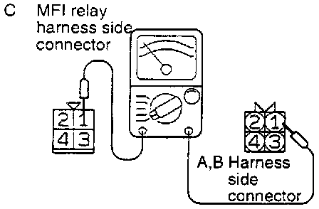 STEP 1. Check for continuity between the heated oxygen sensor and the MFI relay.
