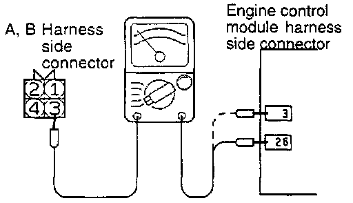 (1) Disconnect the connector to the heated oxygen sensor, then use the special tool (test harness) to make connections with the connection on the heated oxygen sensor side.