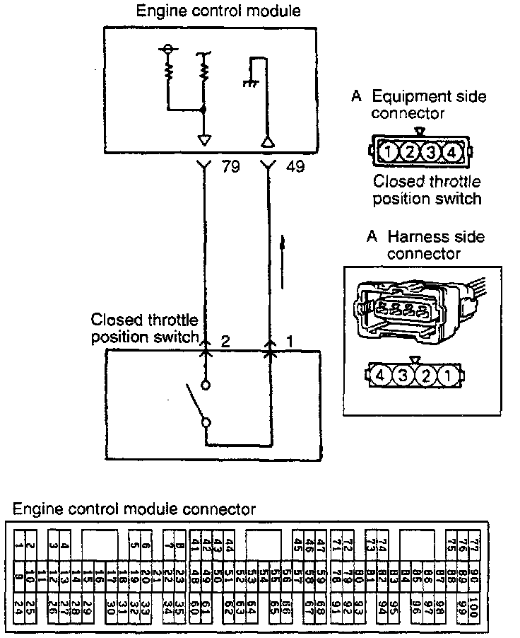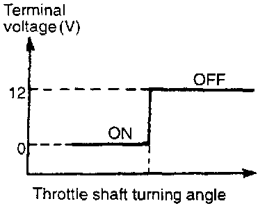 - Voltage within the engine control module is applied, by way of the resistance, to the closed throttle position switch. When the foot is taken off the accelerator, the closed throttle position switch is switched ON, so the current is grounded. As result, the closed throttle position switch terminal voltage changes from HIGH to LOW level.