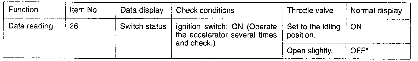 If there is an abnormal condition of the closed throttle position switch output even though the results of the checking of the closed throttle position switch harness and of the component itself indicate a normal condition, the cause is probably one of the following.