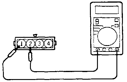 (3) Check for continuity between throttle position sensor connector terminal (1) (sensor ground) and terminal (2) (closed throttle position switch).