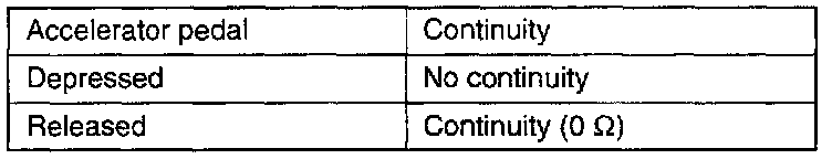 NOTE: If there is no continuity when the accelerator pedal is released, loosen the throttle position sensor installation screw; then, after turning all the way in the clockwise direction, check again.