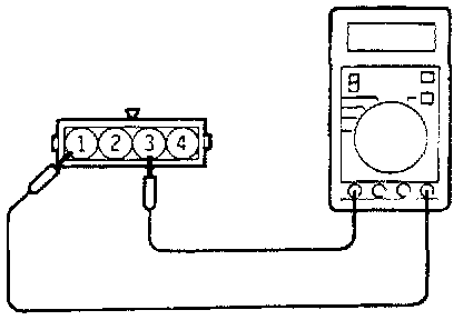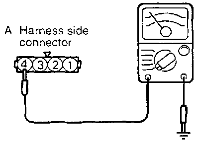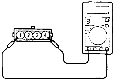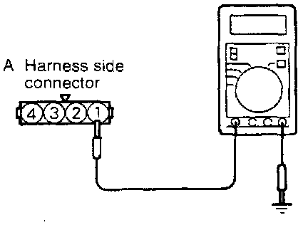 (2) Measure the resistance between terminal (1) (sensor ground) and terminal (4) (sensor power).