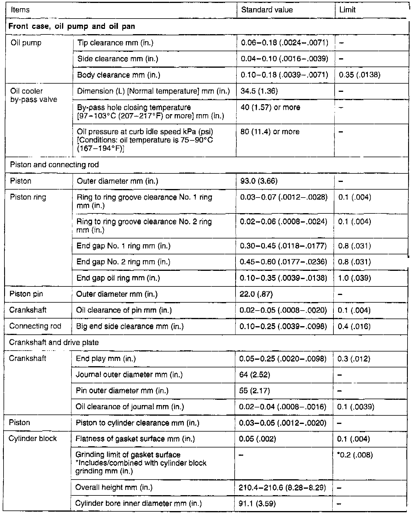 Engine-Overhaul Specifications