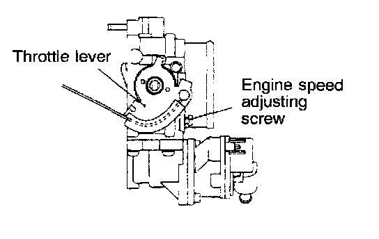 11. After adjustment, check to see that the end of the engine speed adjusting screw is in contact with the stopper of the throttle lever.