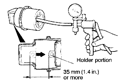 2. Using a vacuum pump, apply a negative pressure to the actuator to check that the holder portion moves more than 35 mm (1.4 in.). Retain the negative pressure in that state to check that the holder portion does not change its position.