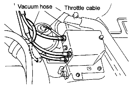 Route the vacuum hose over the throttle cable and connect the hose to the vacuum pump so as to prevent the slackened hose from interfering with other parts.