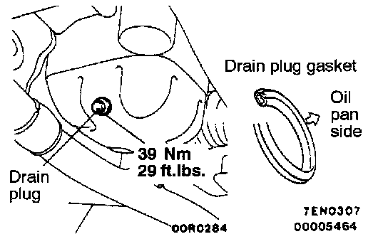 NOTE: Install the drain plug gasket so it faces in the direction shown in the illustration.