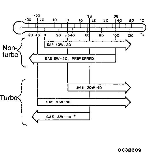 NOTE: *: SAE 5W-30 may be used for operation in very cold weather areas where the lowest atmospheric temperature is below -10°F (-23°C).