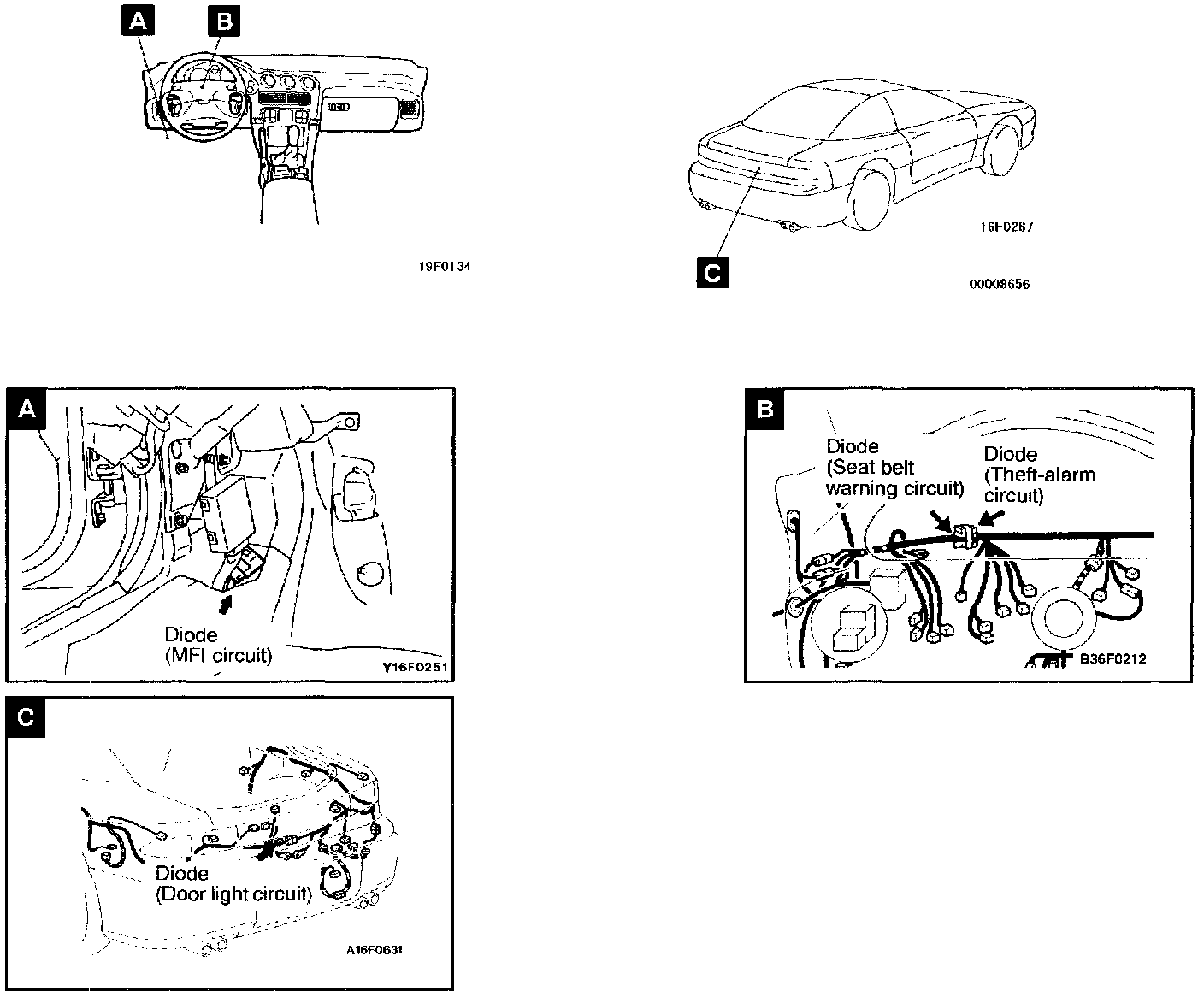 Diode Locations Overall View And Views A-C: