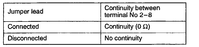 Check the continuity between relay terminal No 2-8 while connecting and disconnecting the jumper lead at the battery (-) terminal.
