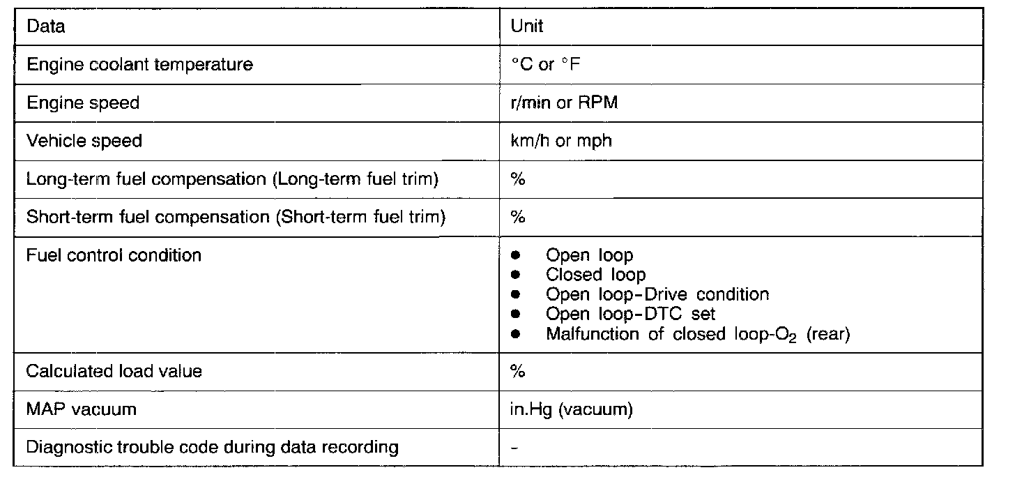 - When driving conditions (engine speed, engine coolant temperature, etc.) are similar to those when the malfunction was first recorded.