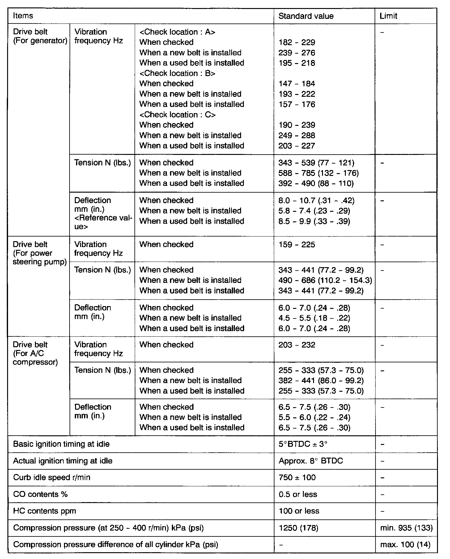 Engine-On Vehicle Service Specifications