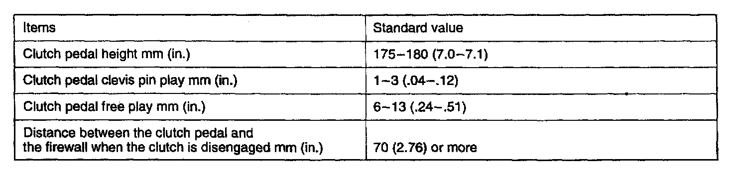 F5M31/F5M33/W5M33 5-spd M/T, Clutch Standard Values:
