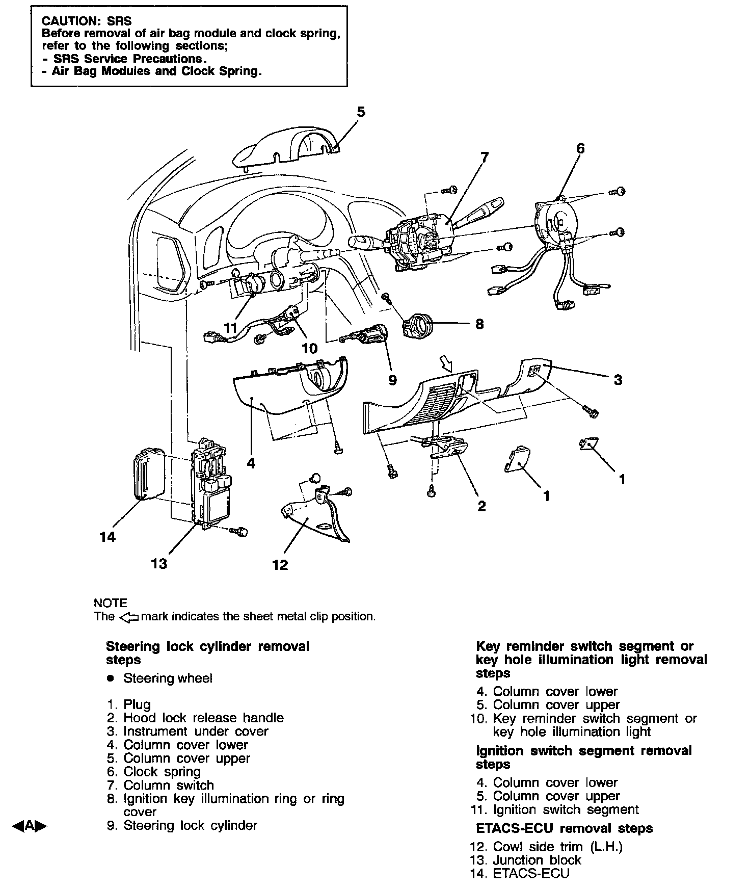 Steering Lock Cylinder Removal: