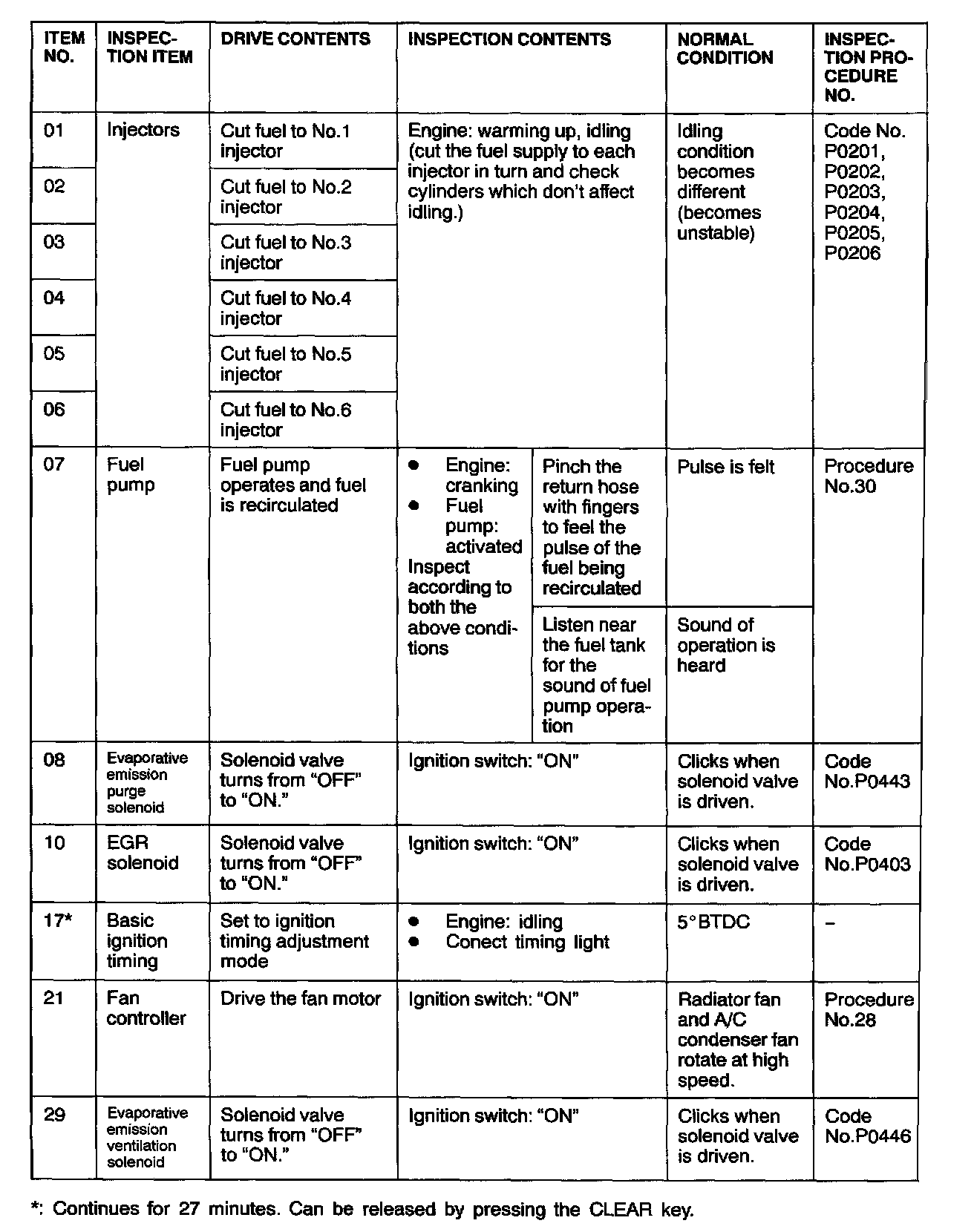 Actuator Test Reference Table: