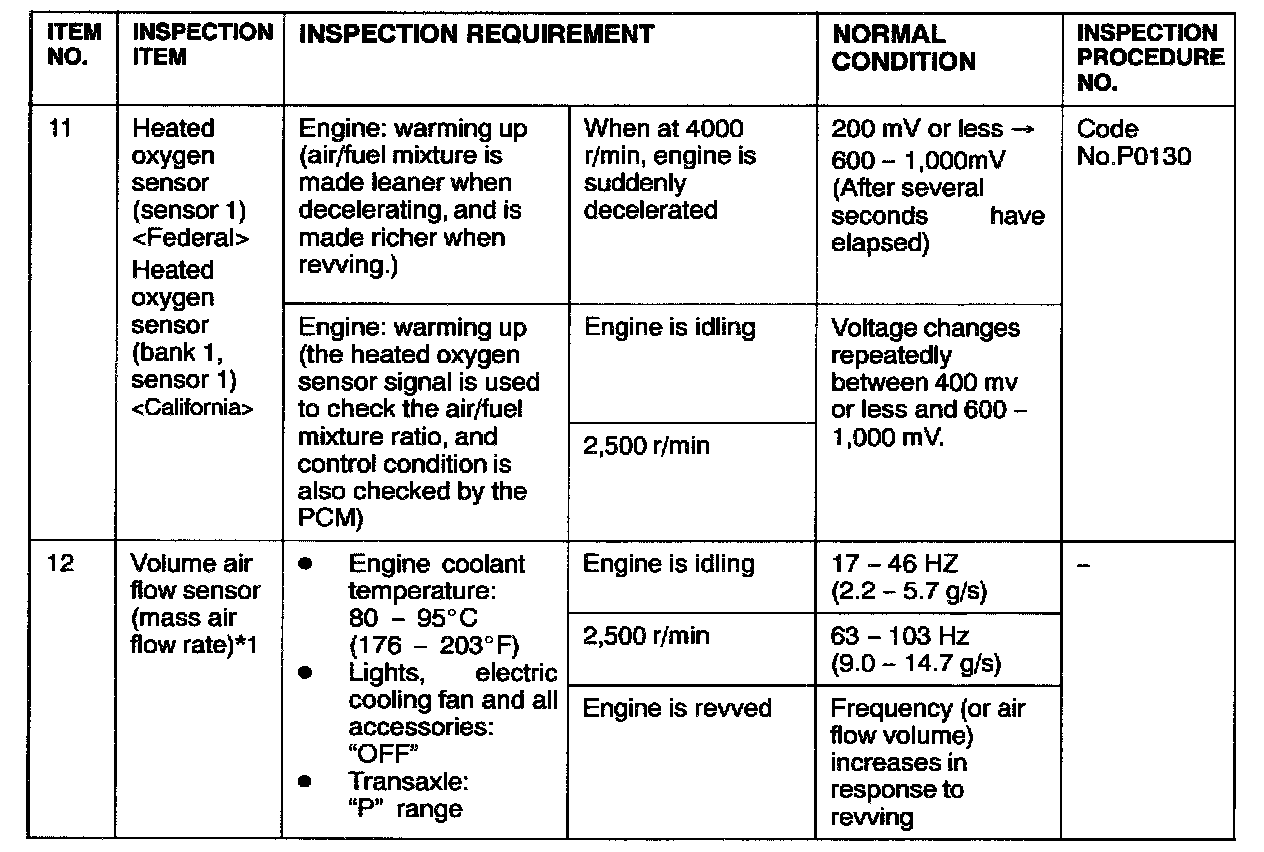 NOTE: *1: In a new vehicle [driven approximately 500 km (311 mile) or less], the volume air flow sensor output frequency is sometimes 10% higher than the standard frequency.