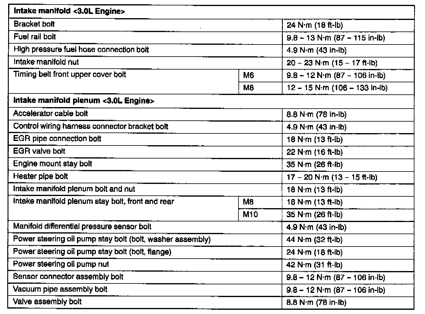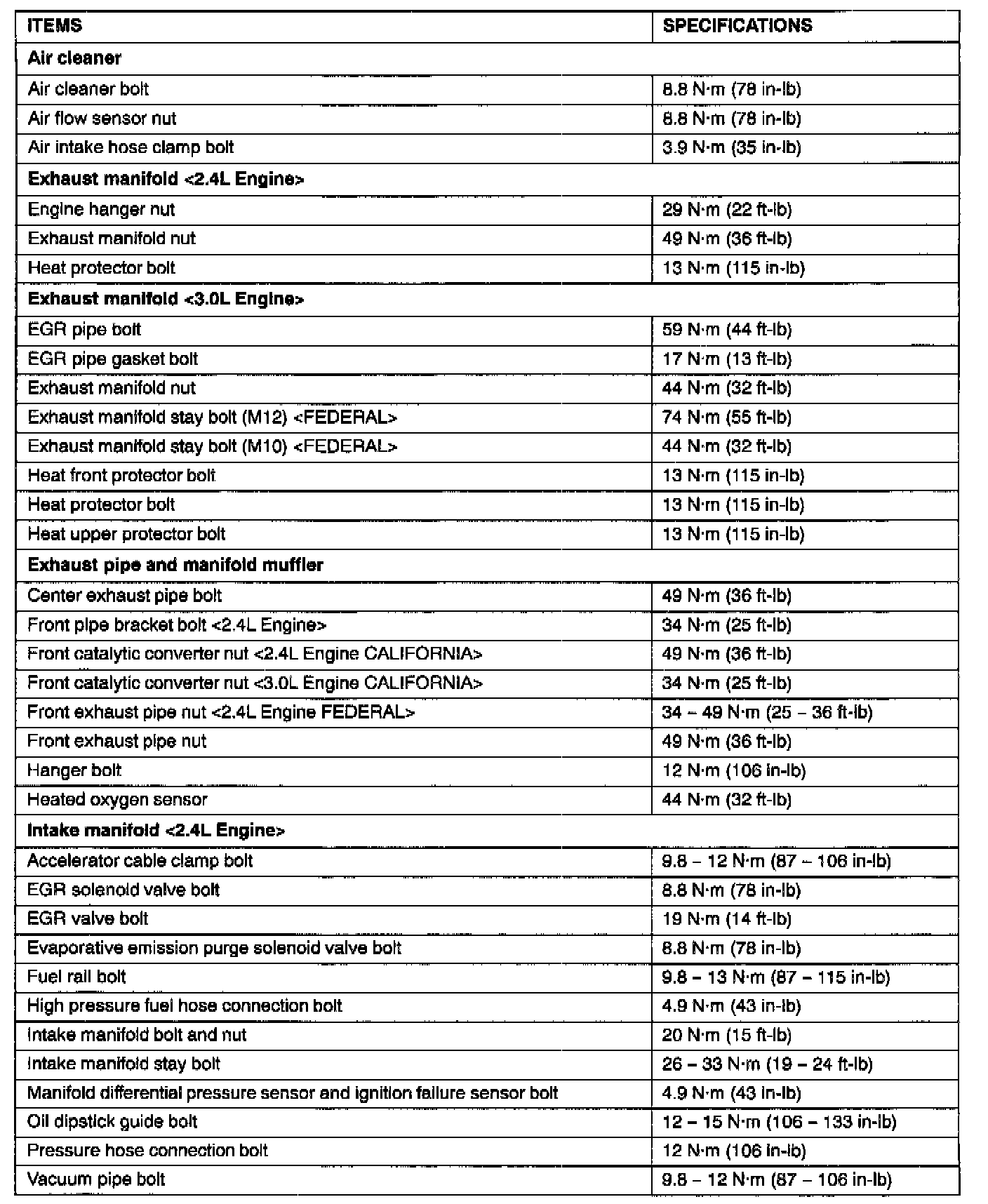 Torque Specifications