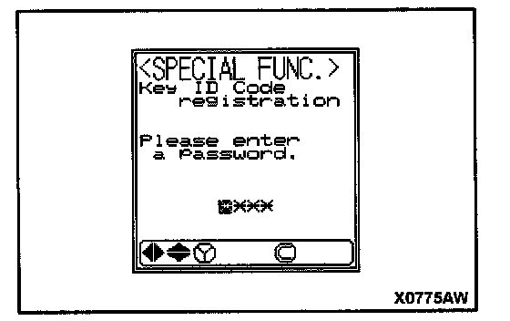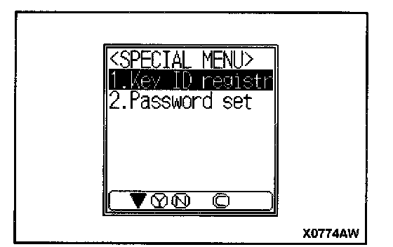 3. This menu is displayed if "SPECIAL FUNCTION" is selected from the immobilizer function menu. Then perform the procedures by referring to "Key ID Register" and "Password Set."