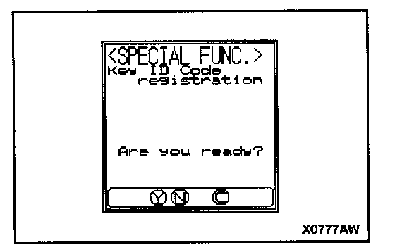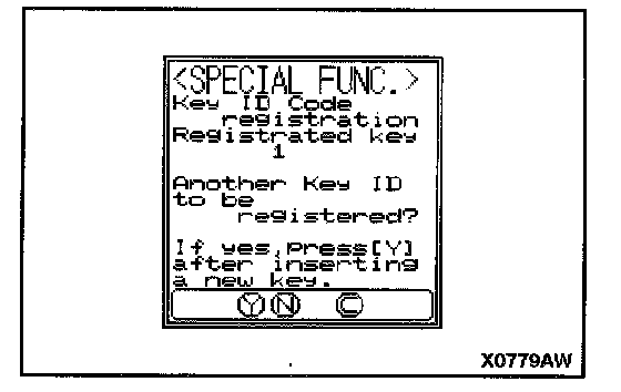 NOTE: Using the key ID register function will cause all key IDs that have been previously registered in the immobilizer-ECU to be erased. All keys need to be registered. Those which have been registered before should be on hand before using this function.