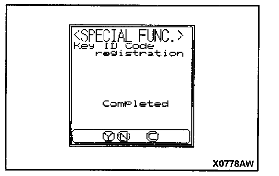 4. Insert the key to be registered into the ignition switch. Turn the ignition switch to the "ON" position. Press the "YES" key to start key ID registration.