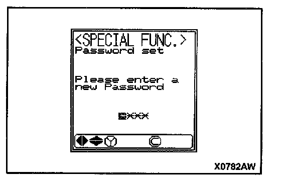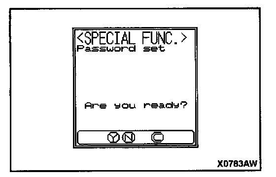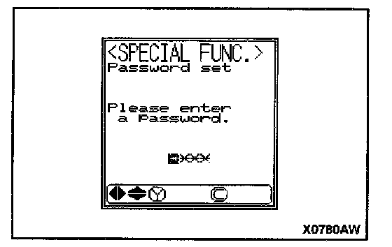 2. If an incorrect password is input five times in a row, the immobilizer-ECU judges that an unauthorized operation is being attempted. Start-prevention mode will be set, and engine operation will stop and all special functions will be disabled.