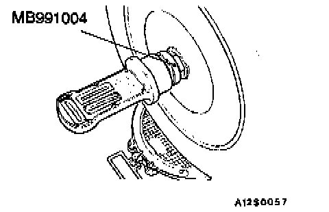 NOTE: For vehicles with aluminum type wheels, attach the camber/caster/kingpin gauge to the driveshaft by using special tool MB991004. Tighten special tool MB991004 to the same torque 196 - 255 Nm (145 - 188 ft. lbs.) as the driveshaft nut.