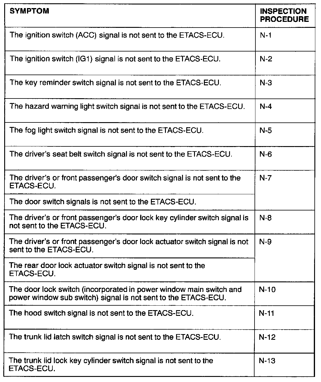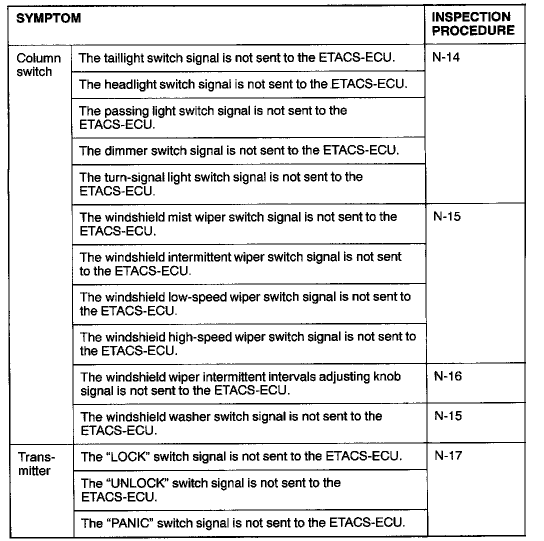 Input Signal Check FunctionThis mode checks the switch input signals to each ECU incorporated in the SWS.